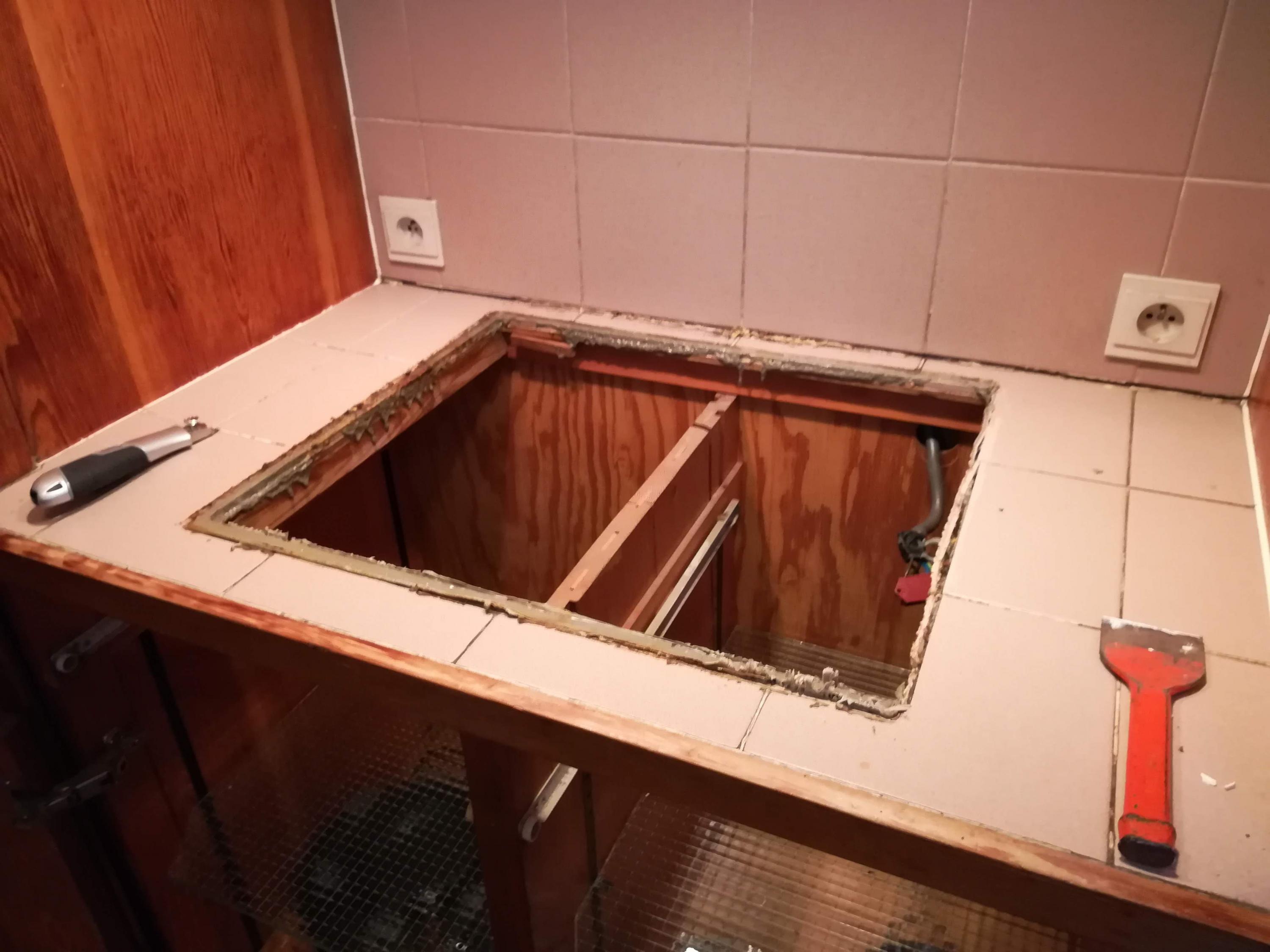We kochten dus al een nieuw exemplaar, al klaar voor de toekomstige keuken. Daarvoor was wel wat aanpassingswerk nodig aan de oude keuken 😅