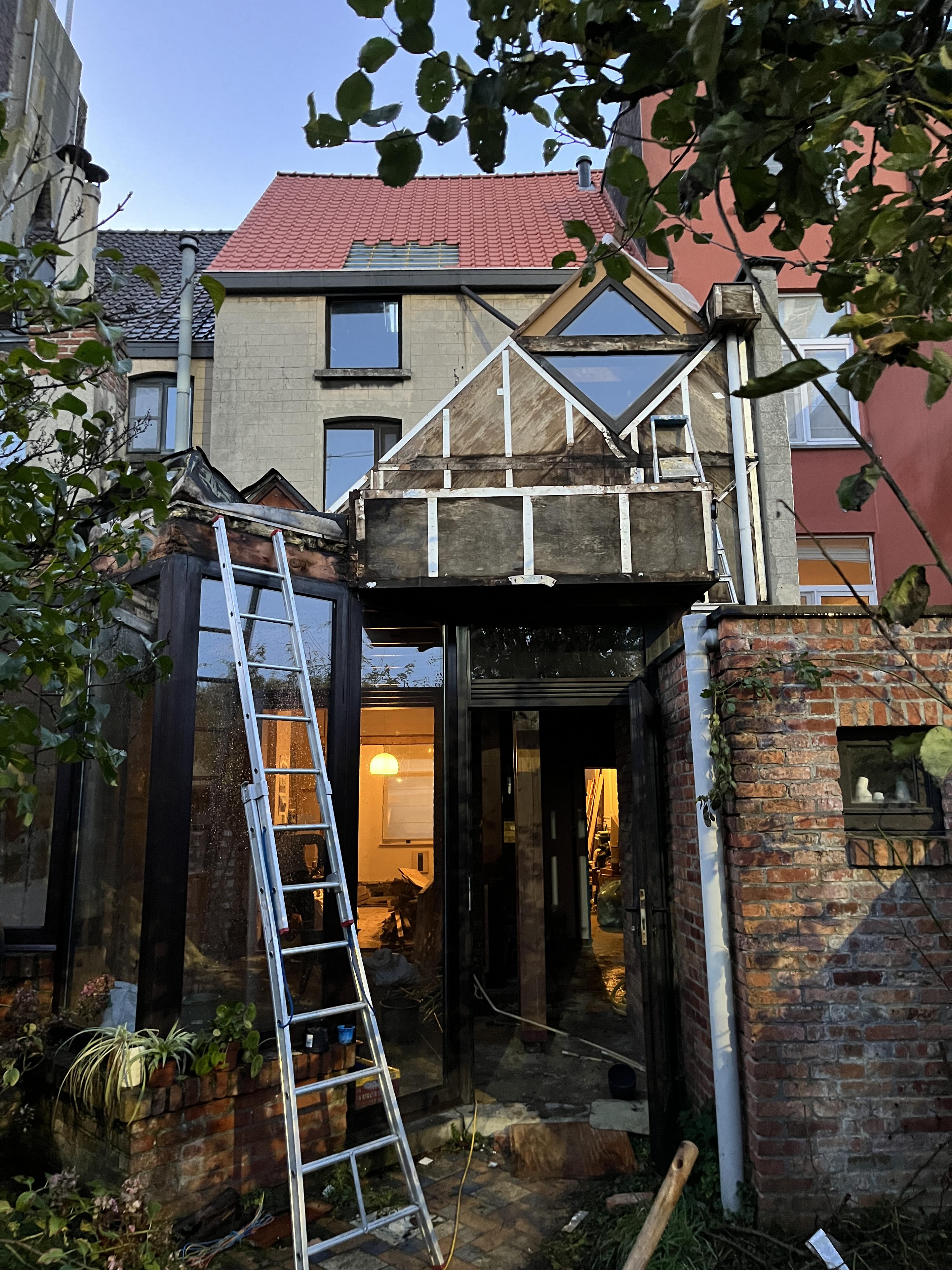 Toen het weer eens wat te hard regende heeft m'n vader nog gezorgd dat het wat minder zou binnen regenen in de badkamer. Achteraf gezien was het misschien toch geen goed idee om de dakpannen er al zo vroeg af te halen, maar het zorgde wel dat de isolatie naar het containerpark kon en de dakpannen naar Oostende. You win some, you lose some 🤷♂️