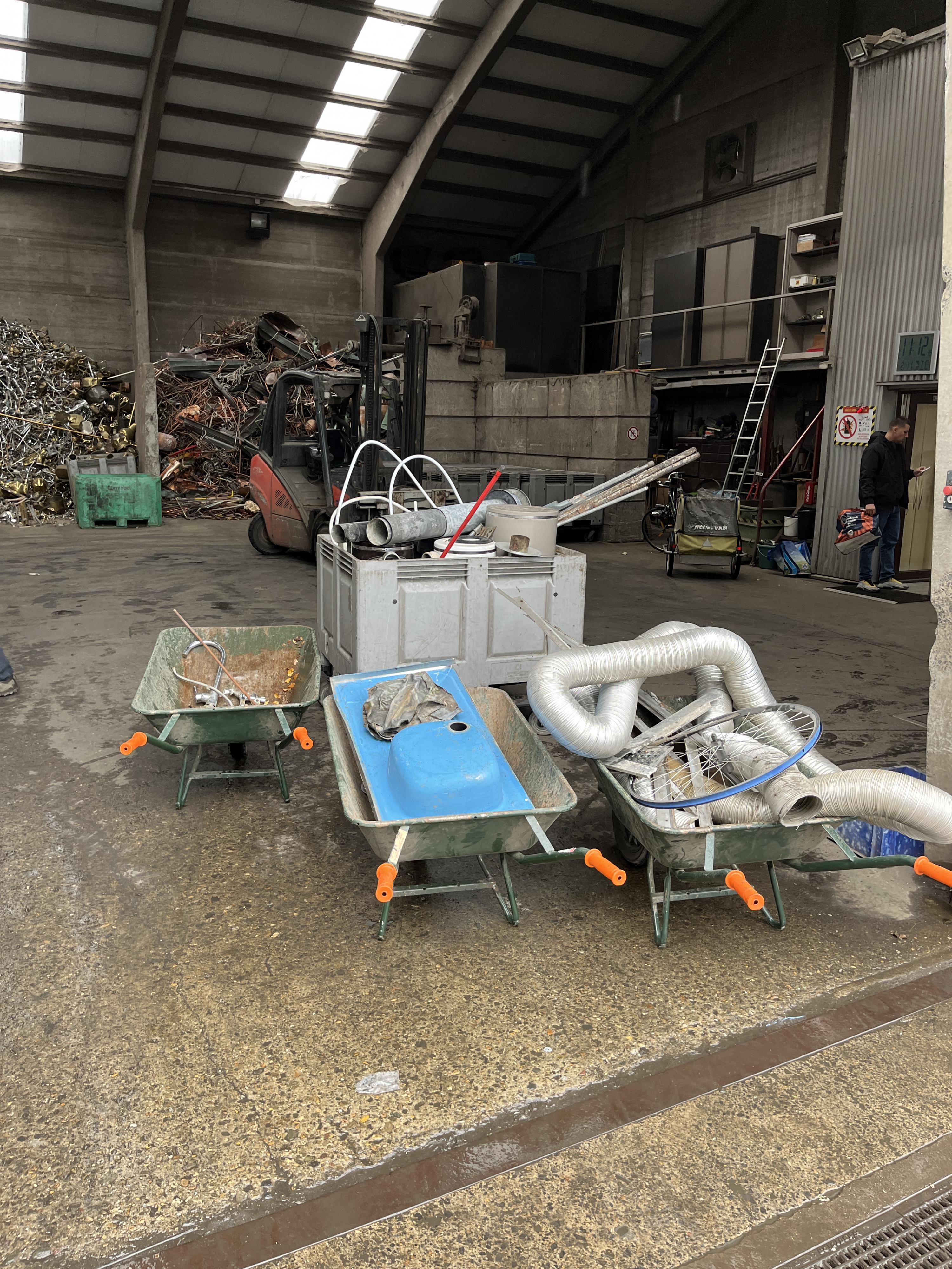 Nu het verlengd weekend voorbij is kunnen we wat materiaal afvoeren. Stap 1 was de kringwinkel. Naast wat kleine spullen en kleren hadden we ook nog de oude gaskachels mee, maar die worden niet meer aanvaard bij de kringwinkel. Gelukkig brachten ze - samen met nog een hele hoop ander metaal - nog wat op bij het oud ijzer. We werden erg goed geholpen bij Verbruggen in de Zeeschipstraat: https://verbruggen-oudemetalen.be