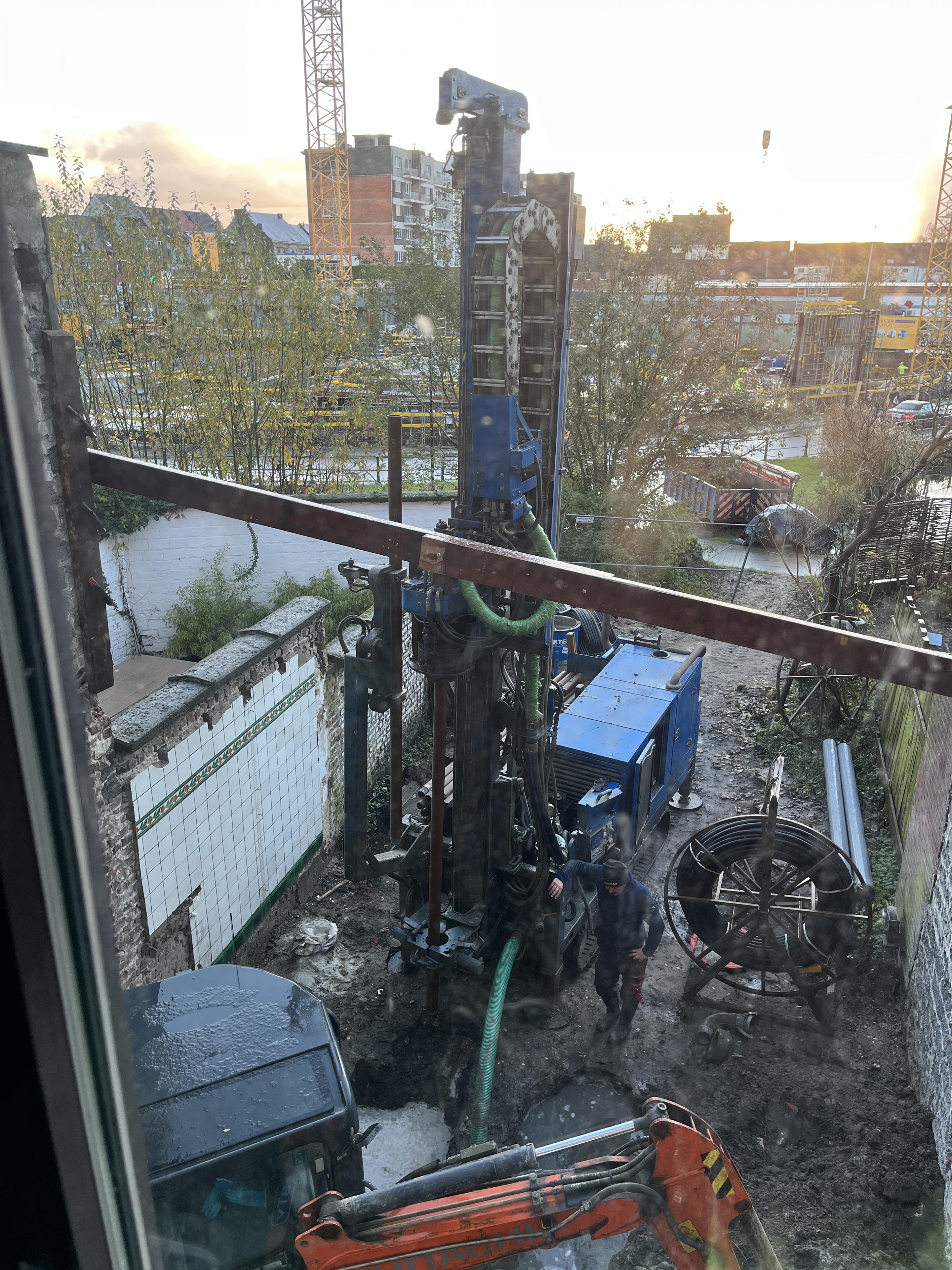 We hebben 2 boringen van 100m diep nodig, dus duimen dat de 2de boring gemakkelijker is!