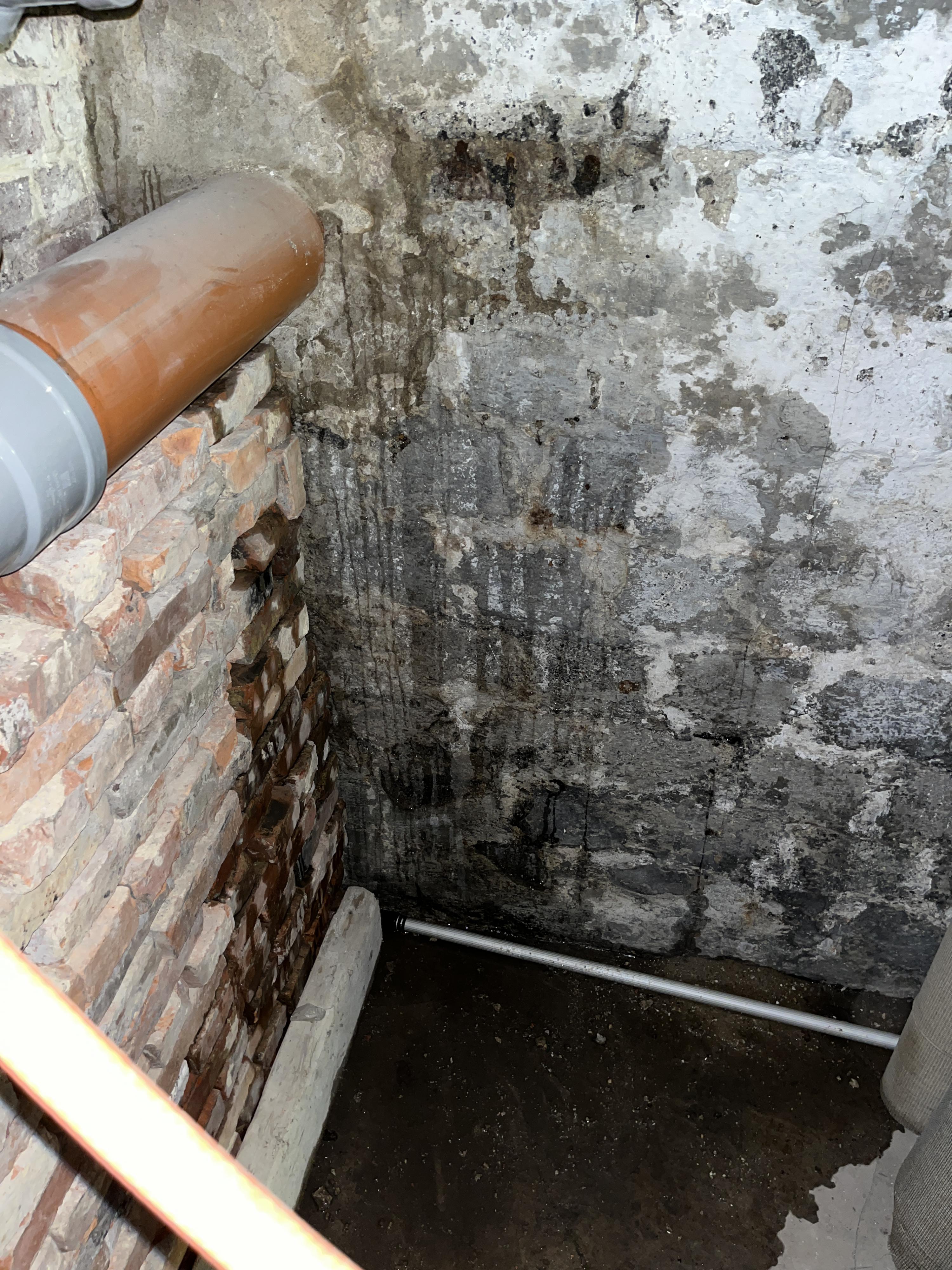 Bij de eerste waterbuffer liep het al mis: er zat nog een oude rioleringsbuis, waardoor het water wegvloeide tot tegen de achtermuur van de kelder. Resultaat: water in de kelder en mislukte poging.